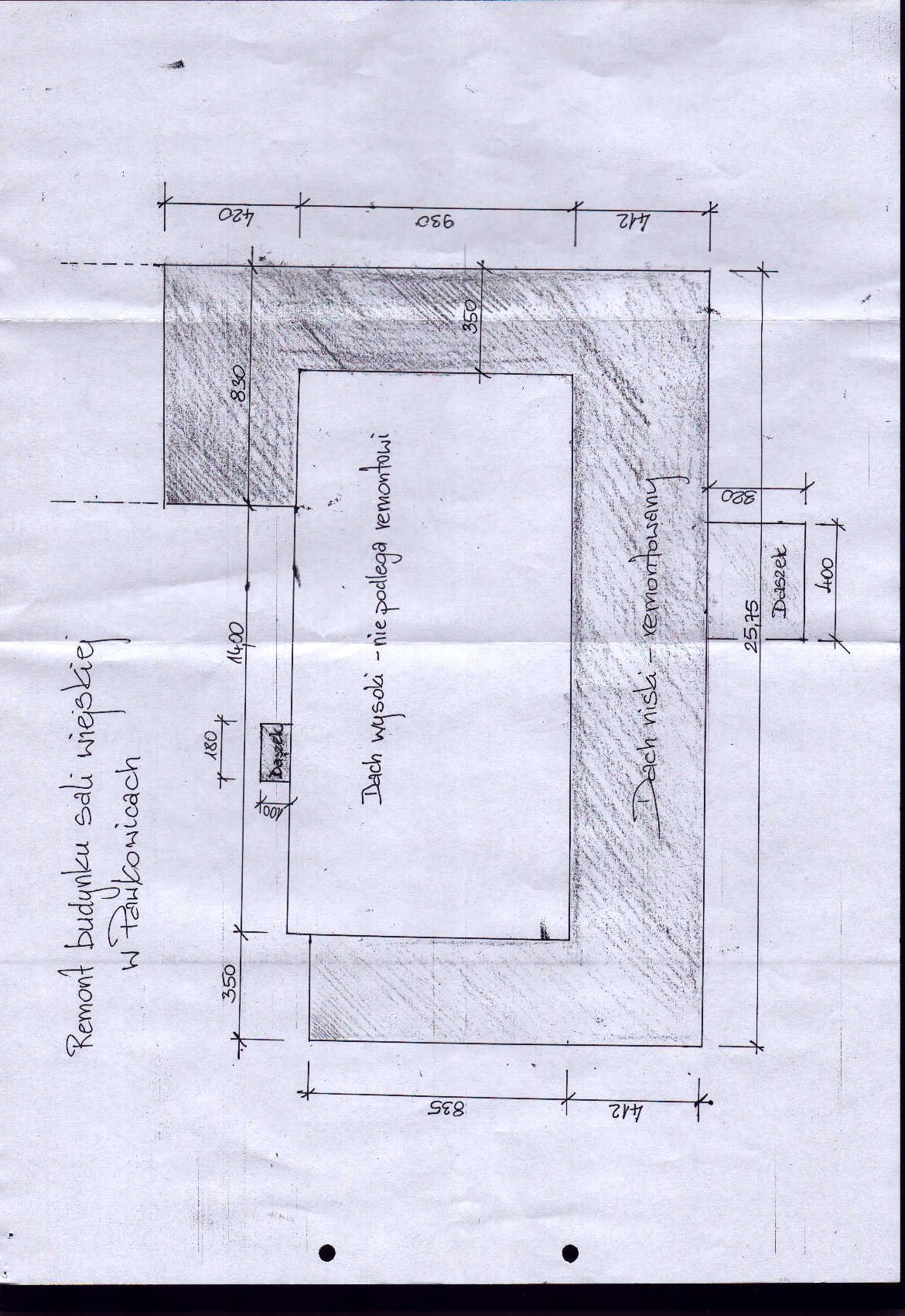 II.3) Określenie przedmiotu zamówienia: Przedmiotem zamówienia jest docieplenie dachu i ścian budynku, wymiana okien i drzwi, remont podłóg i posadzek, oraz roboty malarskie i wykończeniowe, wraz z dostawą stołów szt.15 oraz krzeseł szt.100. Parametry krzeseł: Krzesła drewniane I-go gatunku, tapicerowane z oparciem: - wysokość krzesła nie mniej niż