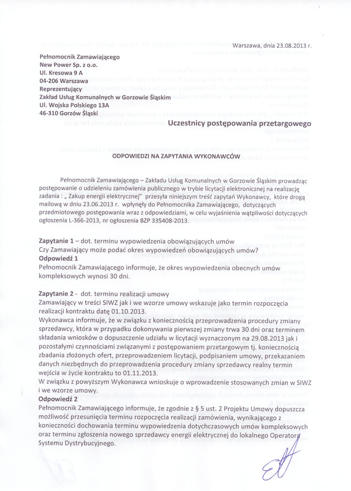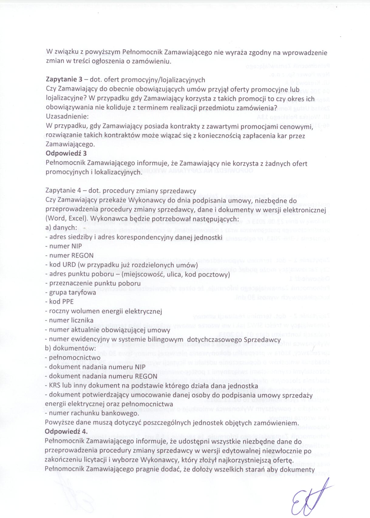 ODPOWIEDZI NA ZAPYTANIA WYKONAWCÓW