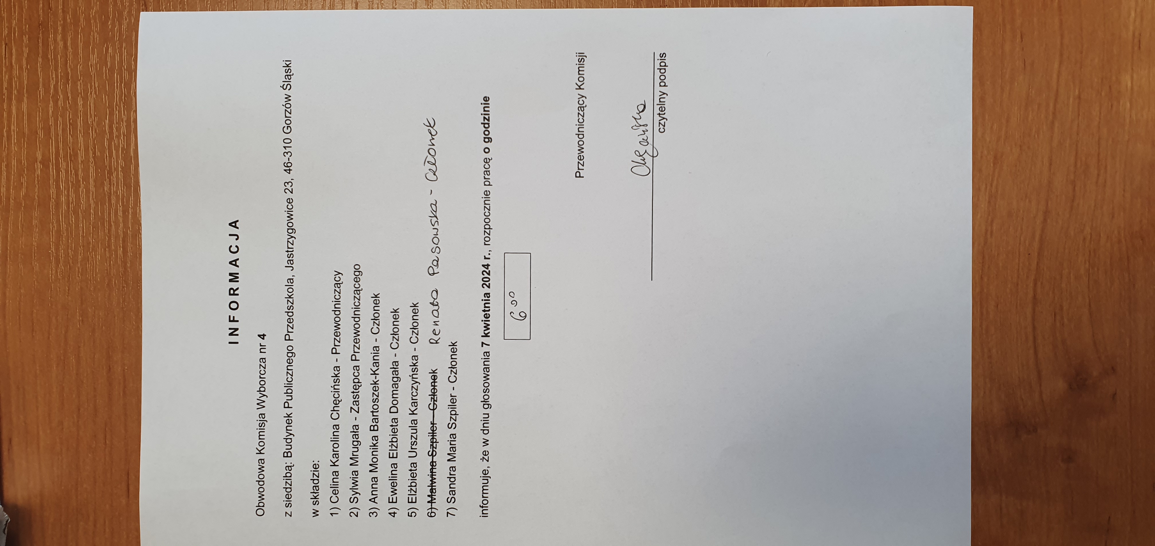 | Osoba odpowiedzialna za informację | Domata Orzeszyna-Gajewska |