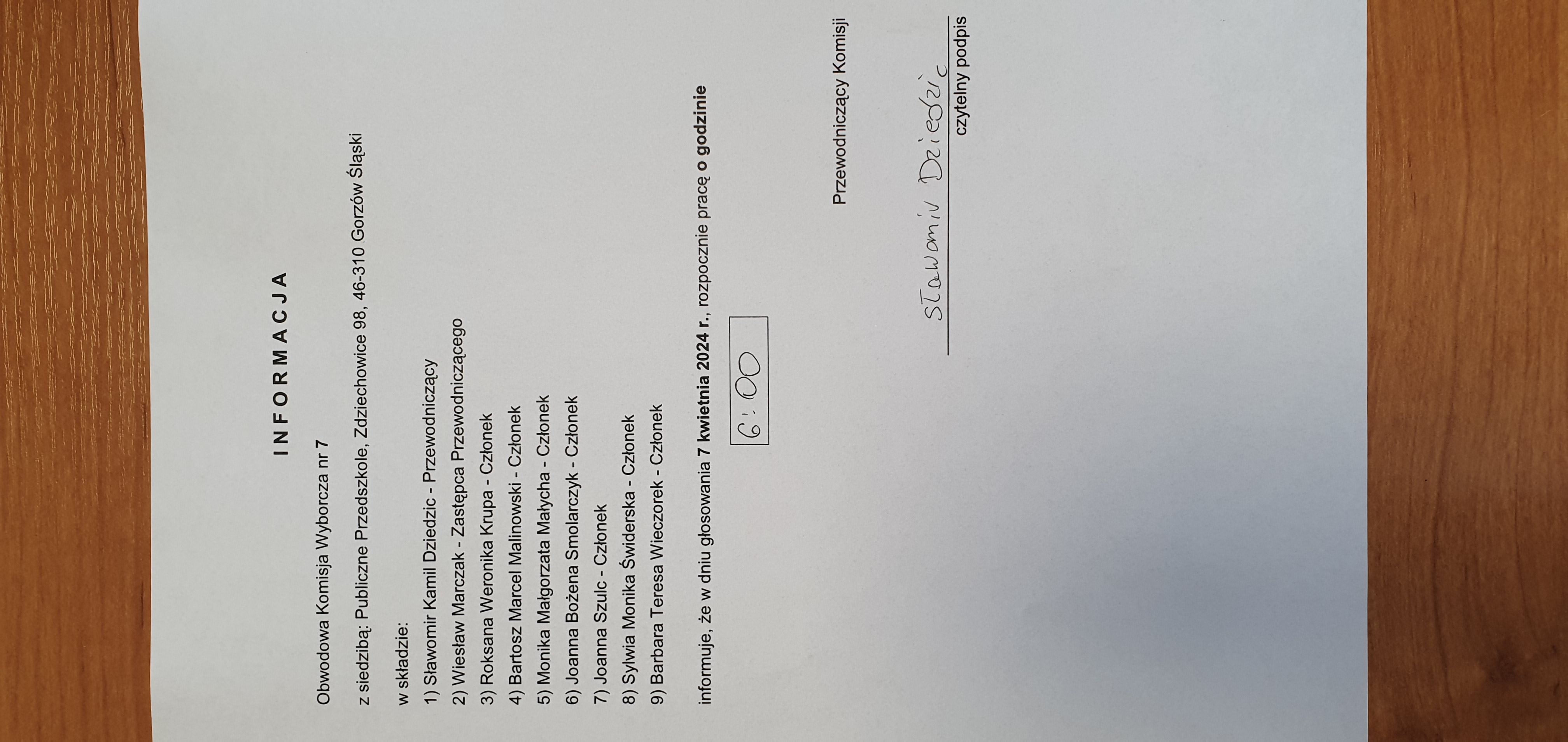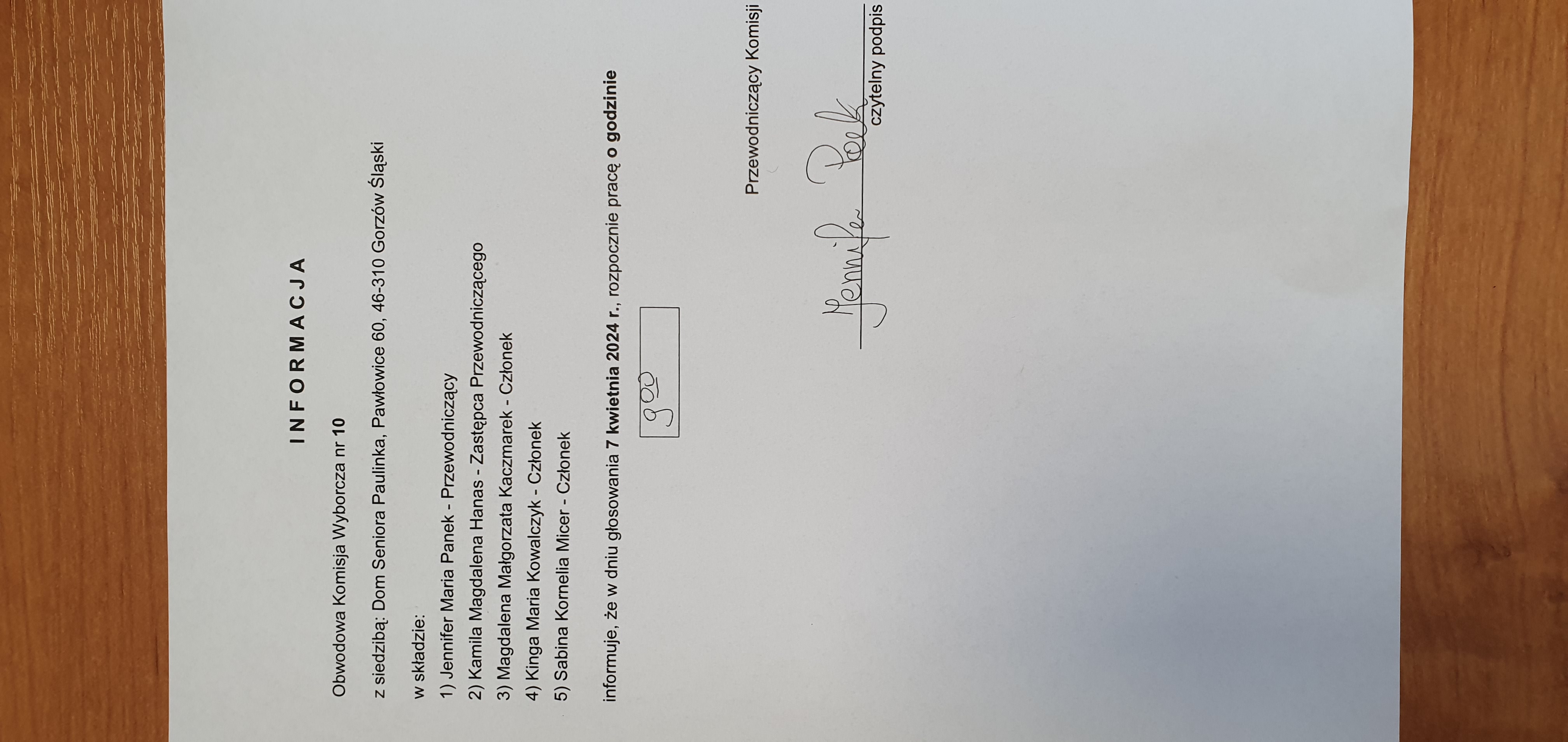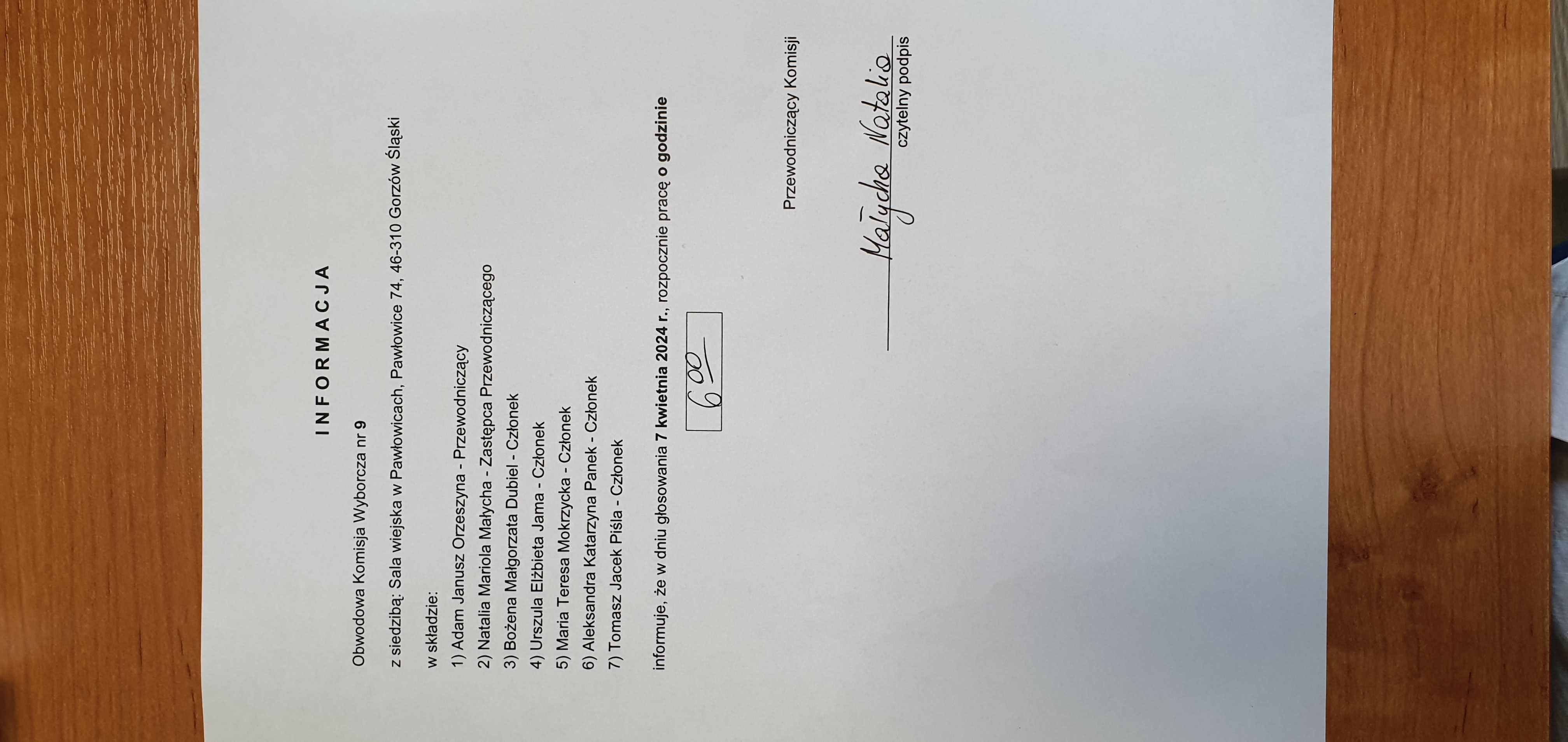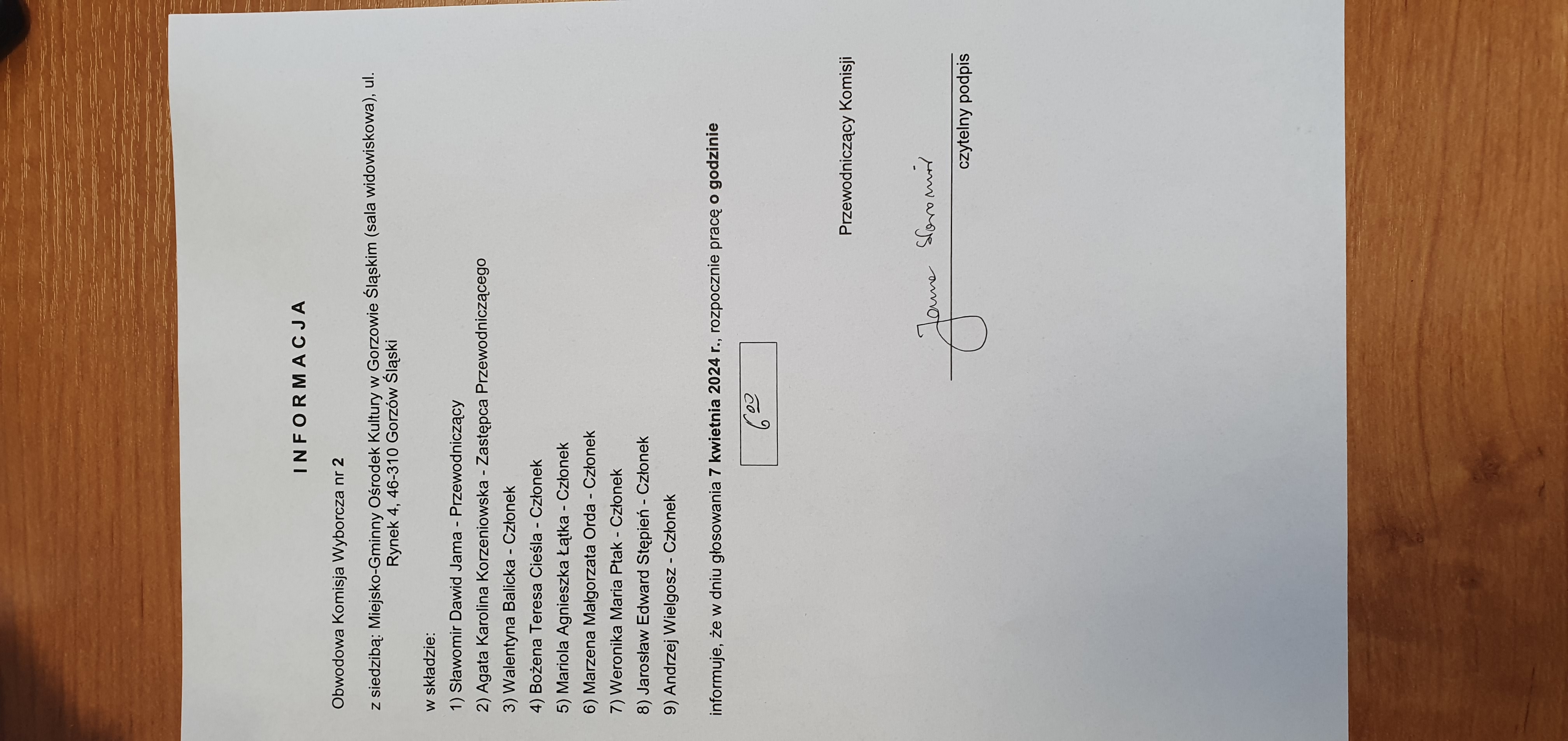 | Osoba odpowiedzialna za informację | Domata Orzeszyna-Gajewska |
